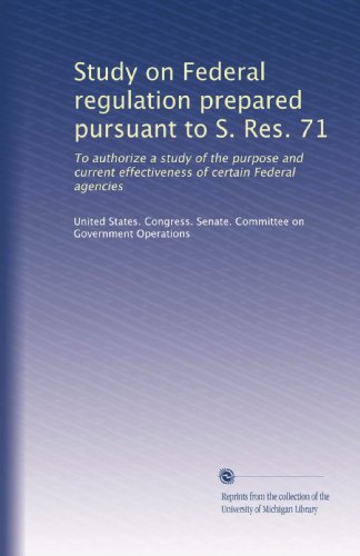 See all customer reviews...Study on Federal regulation prepared pursuant to S. Res. 71: To authorize a study of the purpose and current effectiveness of certain Feder PDF