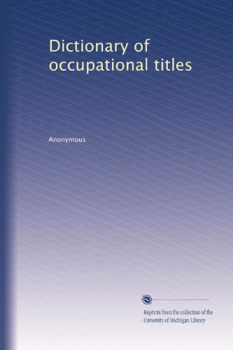 See all customer reviews...Dictionary of occupational titles, by Anonymous PDF