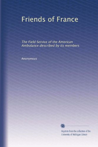 This publication Friends Of France: The Field Service Of The American Ambulance Described offers you much better of life that could create the top quality of the life more vibrant. This Friends Of France: The Field Service Of The American Ambulance Described is what individuals now require. You are here as well as you may be precise as well as sure to obtain this publication Friends Of France: The Field Service Of The American Ambulance Described Never question to get it also this is merely a book. You can get this publication Friends Of France: The Field Service Of The American Ambulance Described as one of your collections. However, not the compilation to show in your bookshelves. This is a valuable book to be reading collection.